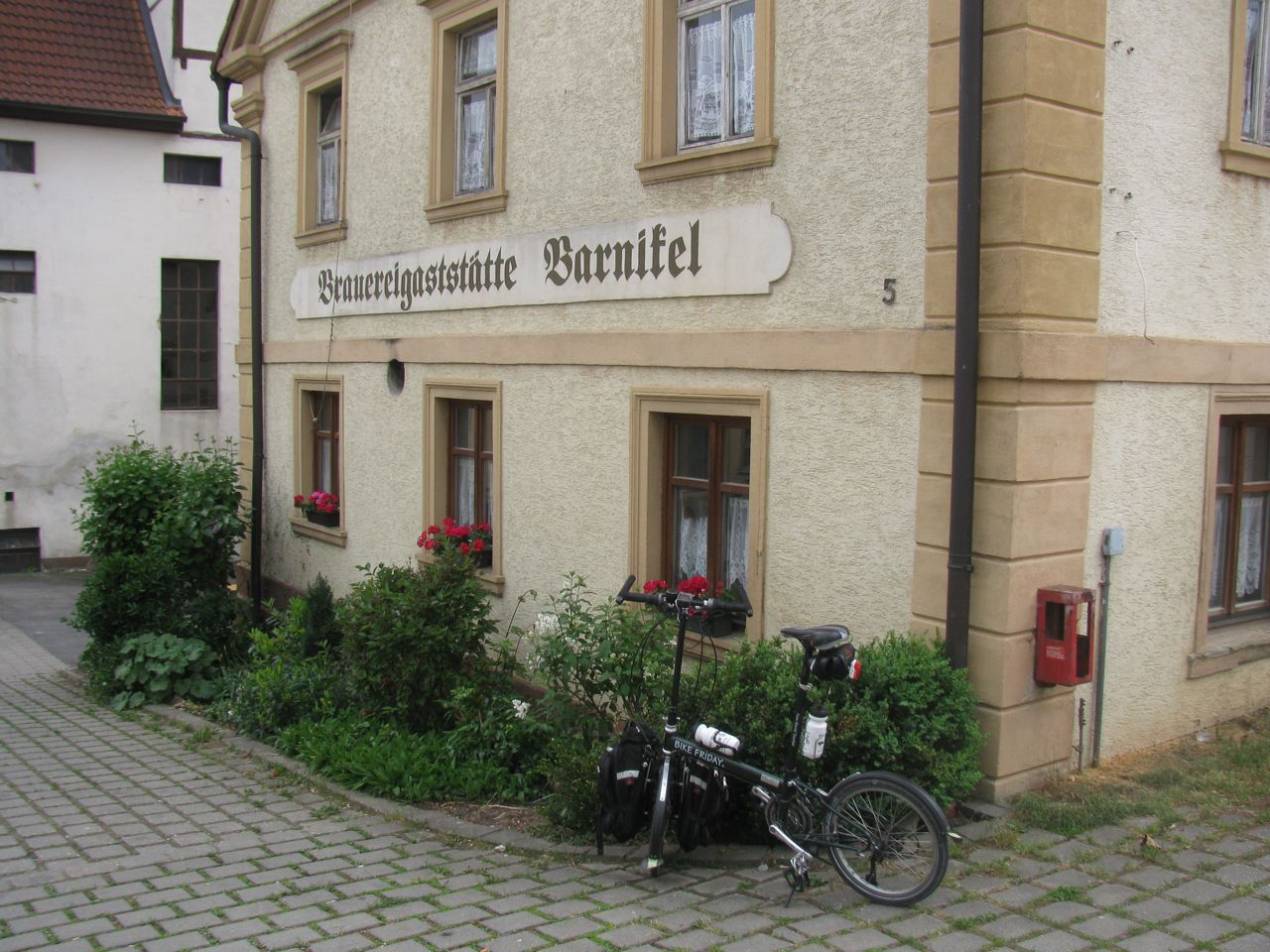 I was on my second beer when it was if somebody had turned off the lights. In a minute or so it went from bright and sunny to very windy and very dark clouds. Oh boy, am I going to get wet. So I finished my beer and headed back to Bamberg at what was (for me) record speed. I kept track of every overpass, bus shelter, grove of trees or anything that might provide shelter. The wind was picking up and there was the smell of rain in the air. And of course the wind was coming at me.